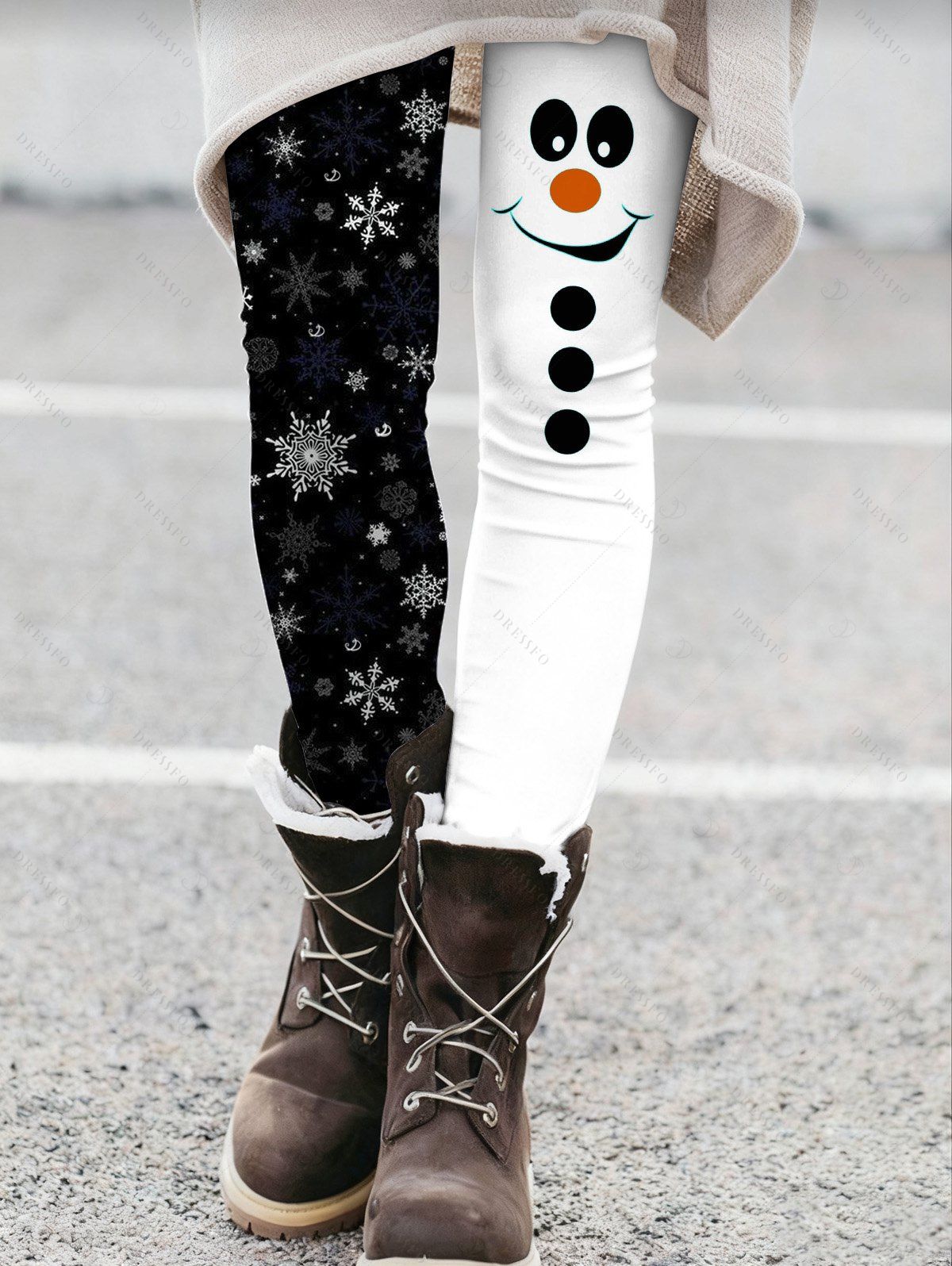 Leggings de Noël Colorblock Bonhomme de neige Imprimé Flocon de Neige Leggings Skinny