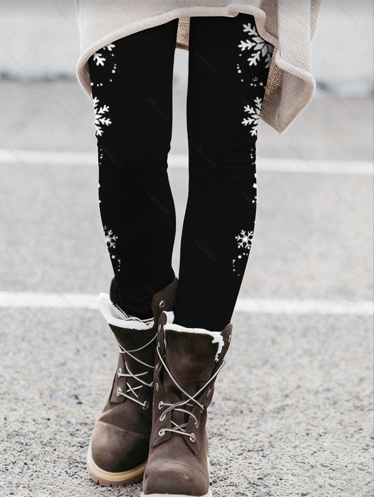Leggings de Noël taille haute élastiques à imprimé flocon de neige - Noir S | US 4