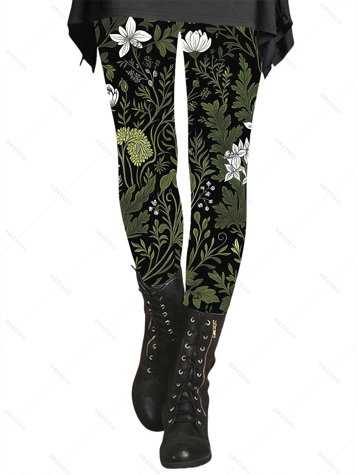 Leggings de vacances à imprimé floral et végétal, taille haute, élastiques et moulants - PLANT GREEN S | US 4