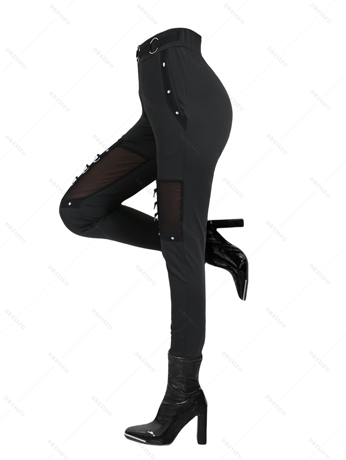 Leggings gothiques de couleur unie avec rivets transparents et anneau en O
