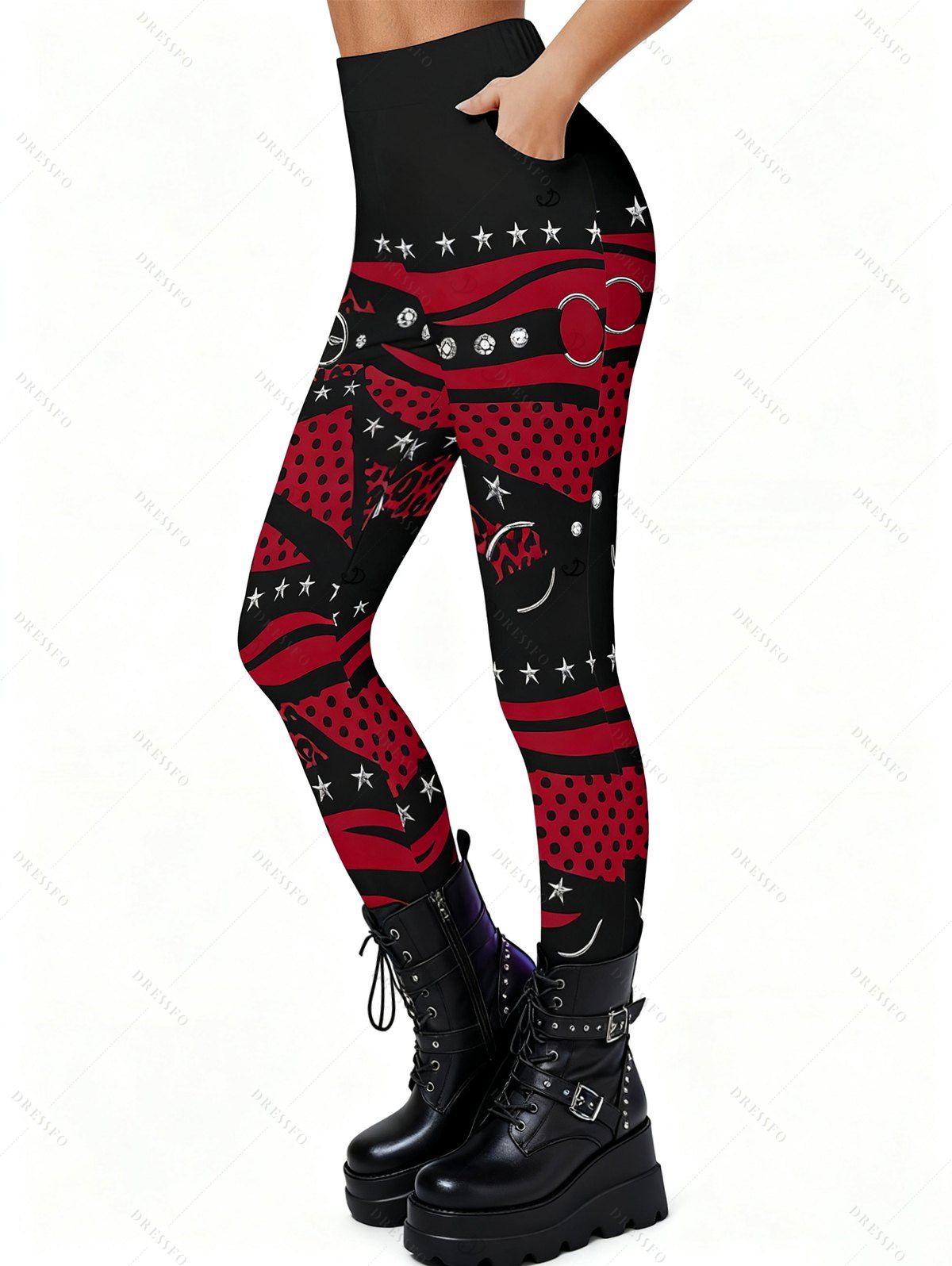 Leggings gothiques à imprimé 3D colorblock, taille haute élastique et skinny - Rouge Vineux XXL | US 14