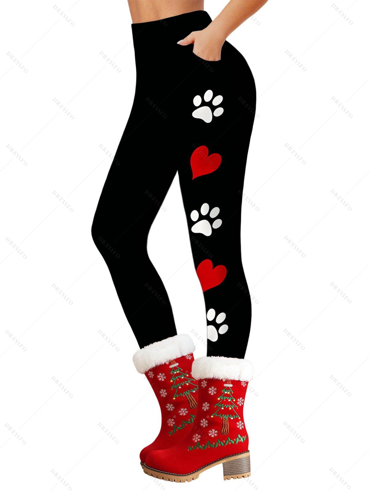 Leggings skinny taille haute élastiques à imprimé patte et cœur - Noir XXL | US 14