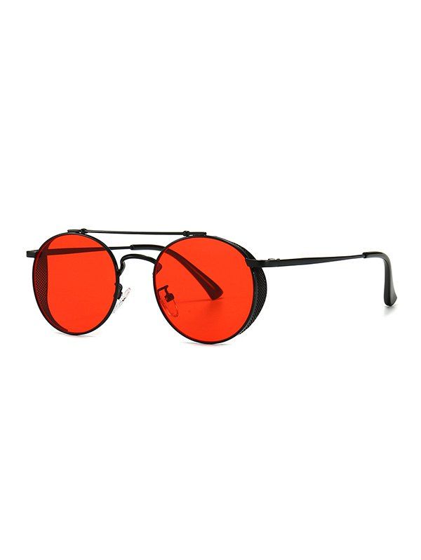Lunettes de Soleil Rondes Barre en Métal Evidé - Rouge