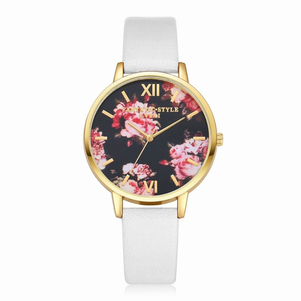 Lvpai P086-G Femmes Mode Bracelet En Cuir Fleurs Cadran Montres À Quartz - Blanc