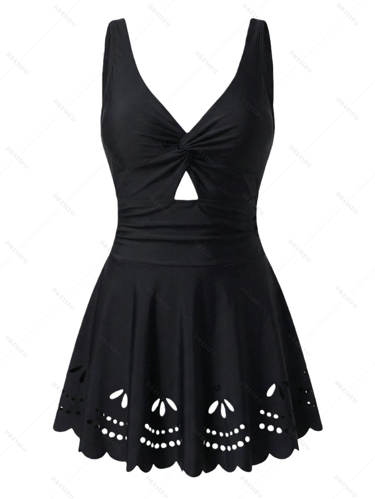 Maillot de bain une pièce de plage, couleur unie, ajouré, pour les vacances - Noir XL | US 10