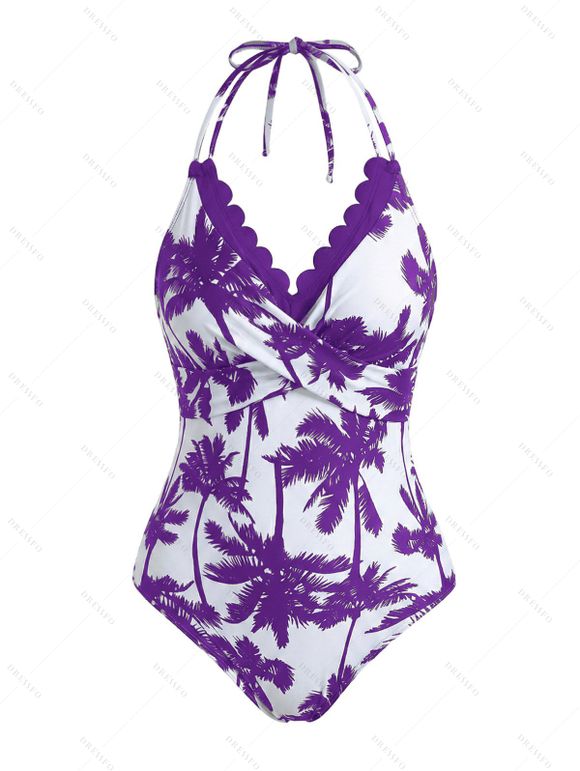 Maillot de bain une pièce de plage à imprimé cocotier et dos nu festonné - Pourpre XL | US 10