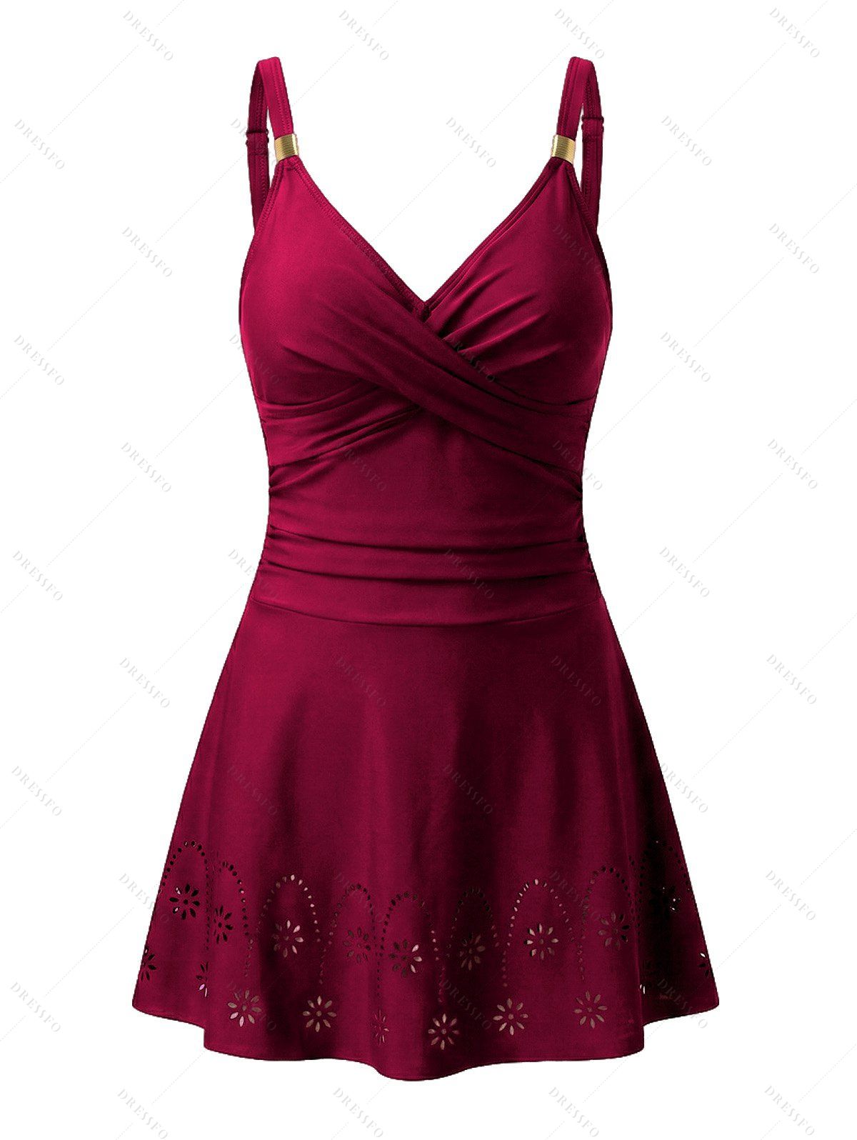 Maillot de bain une pièce de plage à imprimé floral croisé et ajouré - Rouge Vineux S | US 4