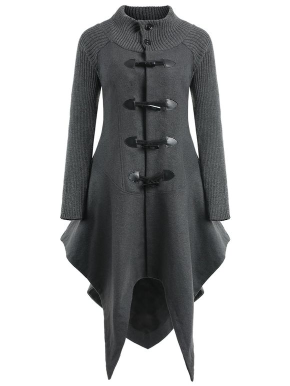 Manteau Mouchoir en Laine à Bouton en Corne - gris foncé 2XL