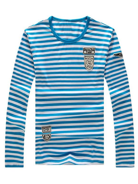 Men 's Casual rayé à manches longues T-shirt - Azur XL