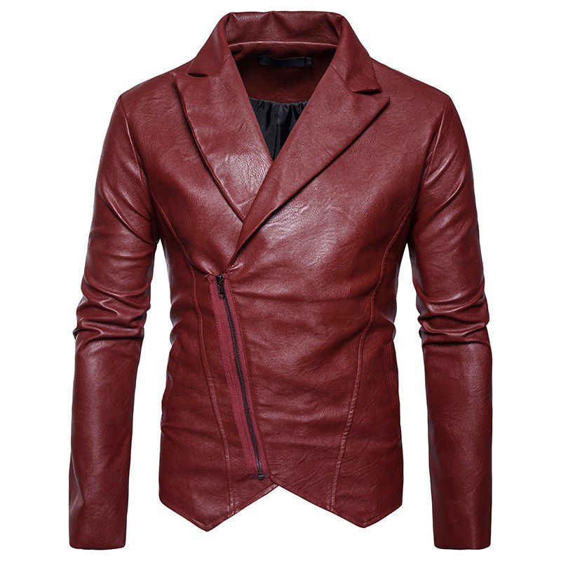 Men  'S Mode et Casual Zipper Personnalité Revers Veste de réparationPY23 - Rouge M
