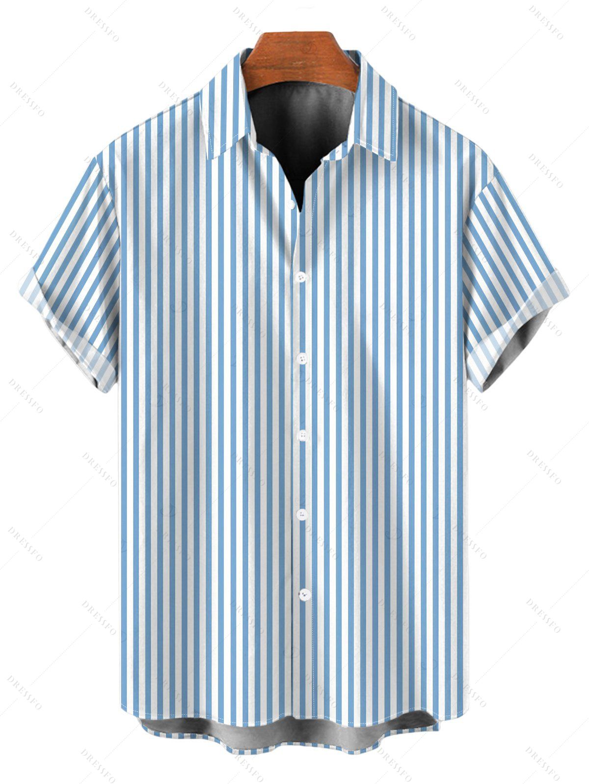 Men's Beach Vacation Shirt Bicolor Striped Print Button Up Shirt - Bleu clair 5XL