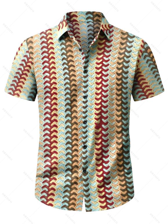 Men's Bohemian Shirt Colorblock Arrow Ethnic Print Button Up Knitted Shirt - multicolor S
