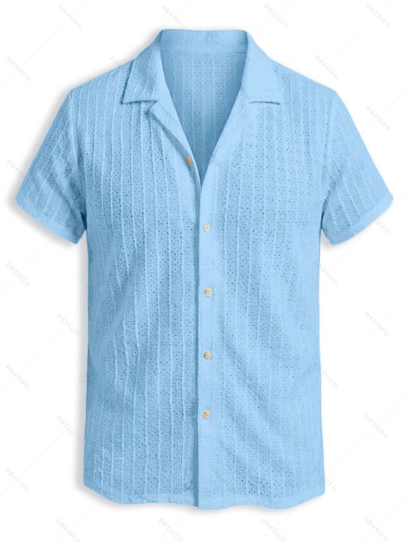 Men's Casual Shirt Textured Knitted Solid Color Button Up Shirt - Bleu clair 2XL