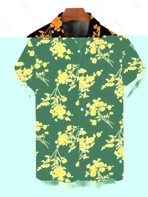 Men's Vacation Shirt Retro Botanical Cluster Floral Print Button Up Shirt - Noir 5XL
