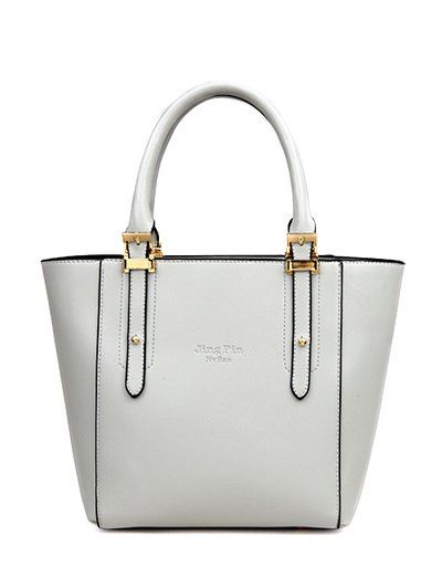 Métal Boucles PU cuir sac fourre-tout - Gris Clair
