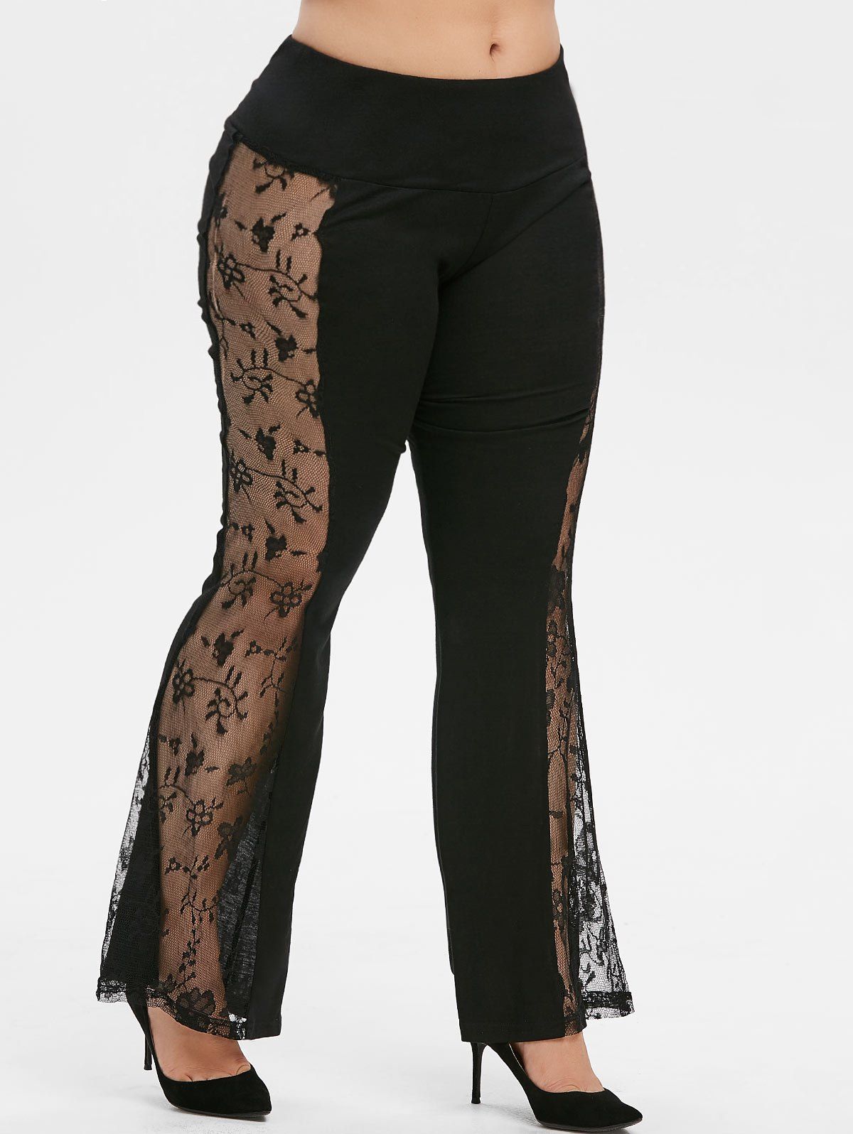 Mid dentelle de montée panneau Taille Plus Pantalon Flare