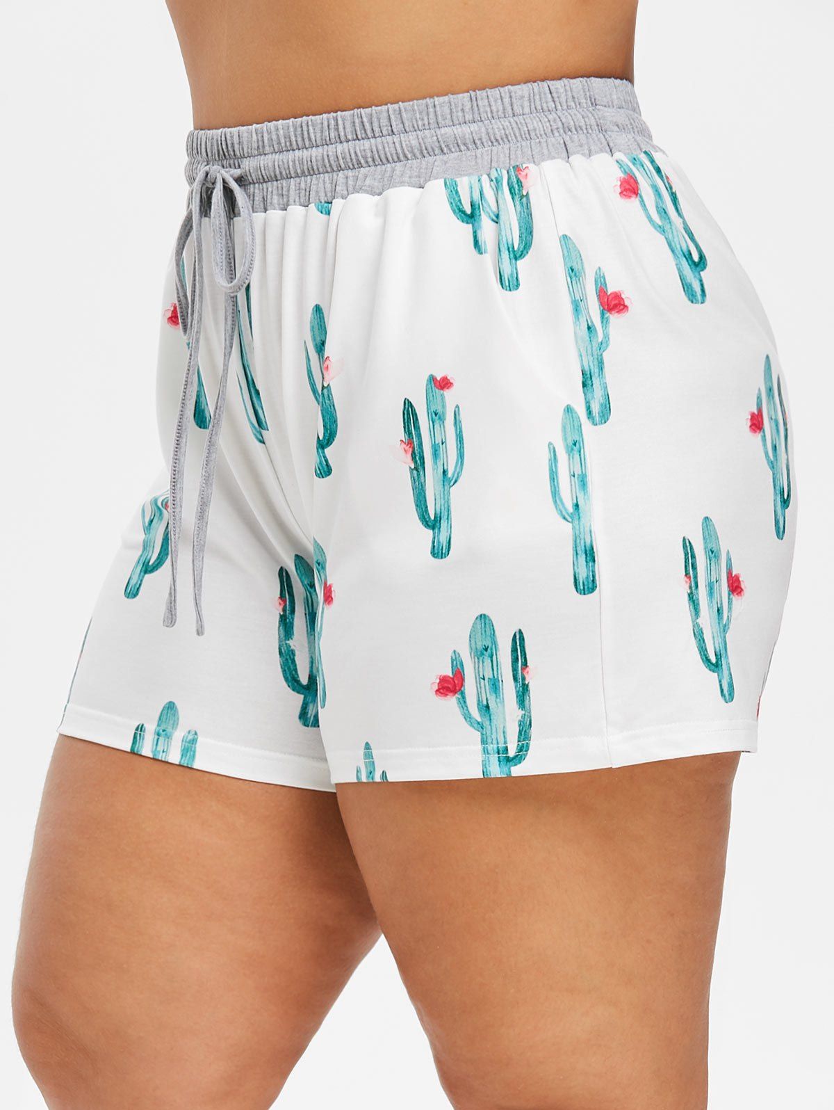 Mini Short Cactus Imprimé à Taille Haute de Grande Taille à Cordon - Blanc 4X