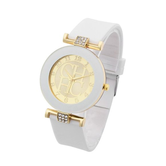 Mode montre en quartz occasionnel de montres de quartz de femmes de montre de robe de silicone - Blanc