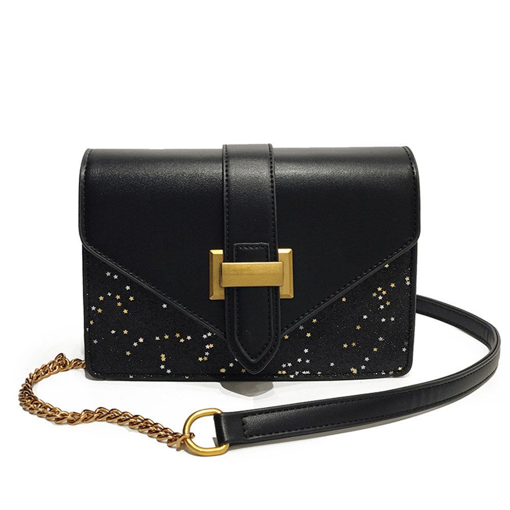 Paillettes à la mode petite sac d'épaule carrée sauvage couture sac messenger - Noir