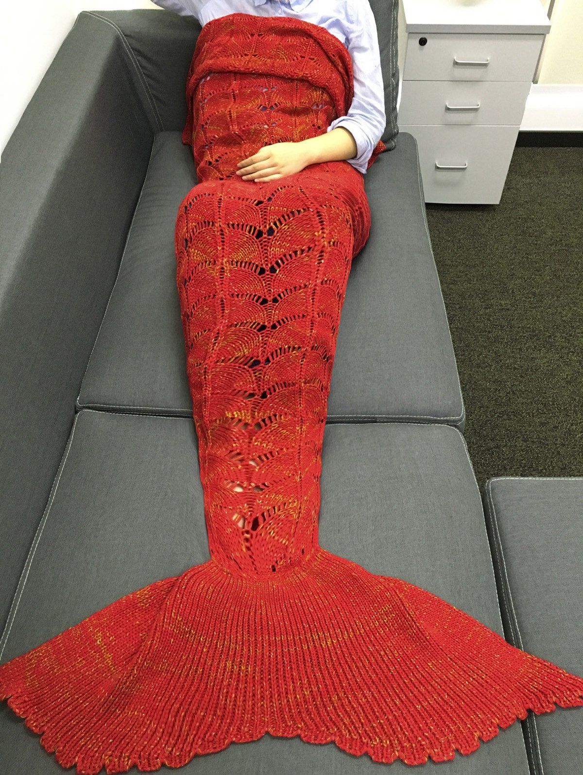 Mode Tricot évider Design Sirène Forme Blanket - Rouge