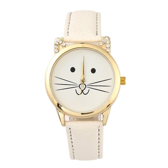 Montre de diamant artificielle de chat de bande dessinée - Blanc