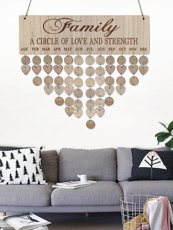 Tableau Calendrier de Rappel des Anniversaires en Bois Motif de Famille