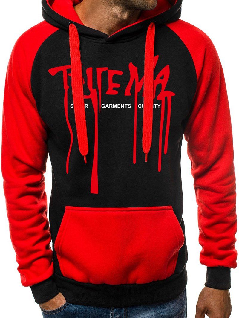 Sweat à Capuche Fourré Motif Graphique avec Poche - Rouge Vineux M