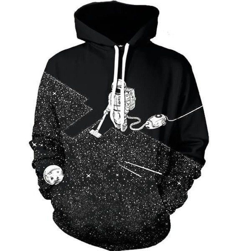 Nouveau astronaute Weeding Digital imprimé à capuche - Noir 3XL