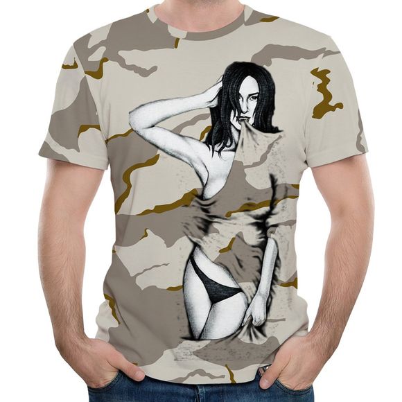 Nouveau t-shirt à manches courtes imprimé de mode d'été 3D hommes - Camouflage Numérique du Désert S