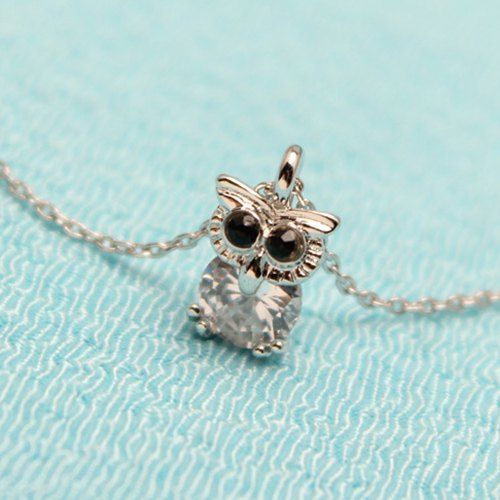 Owl collier pendentif strass strass - Argent