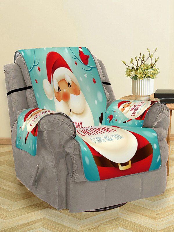 Housse de Canapé de Noël Motif de Père Noël - Bleu Vert SINGLE SEAT