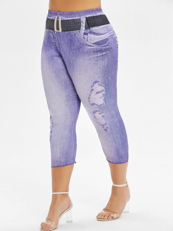 Pantalon Moulant Capri Imprimé de Grande Taille - Pourpre L