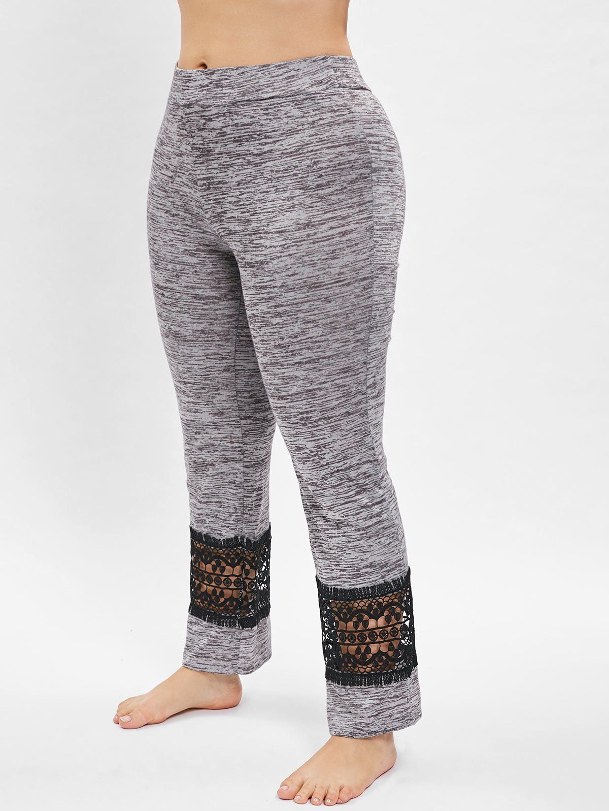 Pantalon Palazzo en Dentelle Insérée à Jambe Large de Grande Taille - Cuirassé Gris 2X