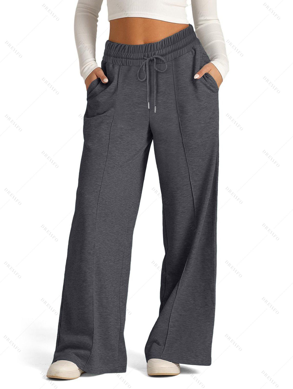 Pantalon long uni à jambes larges et cordons de serrage - Gris Foncé XXL | US 12