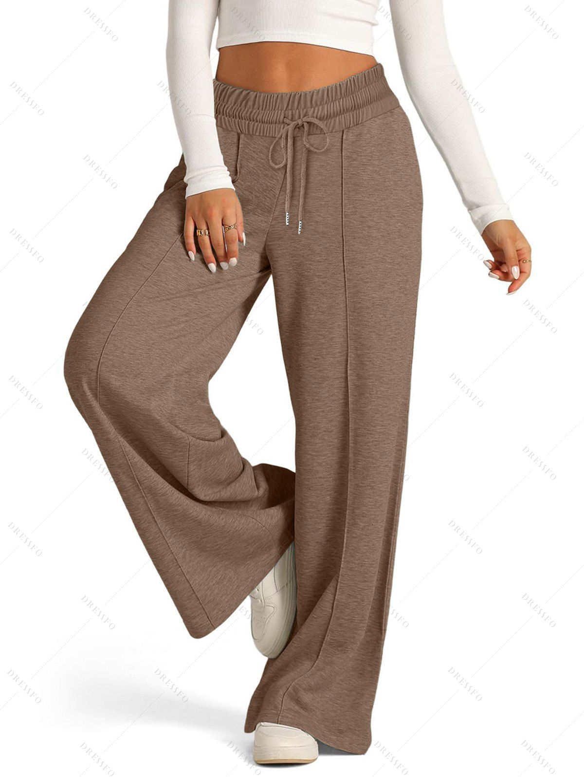 Pantalon long uni à jambes larges et cordons de serrage - Brun Légère M | US 6