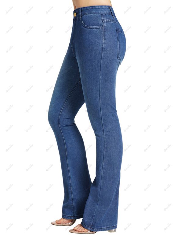Pantalon Zippé Au Lavage Foncé à Taille Haute en Denim avec Poches - Bleu L