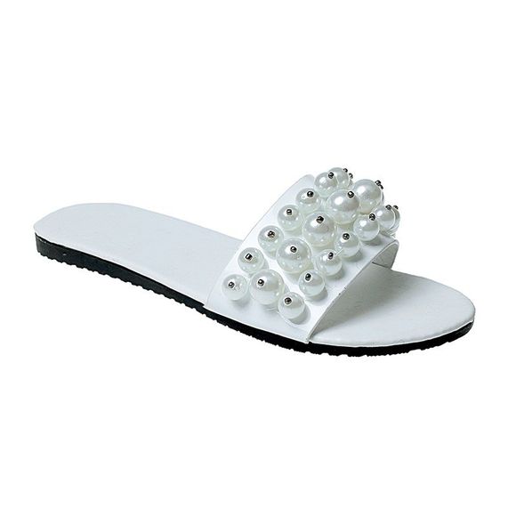 Pantoufles antidérapantes à fond plat TY-805 Pearl Dew Toe - Blanc 41