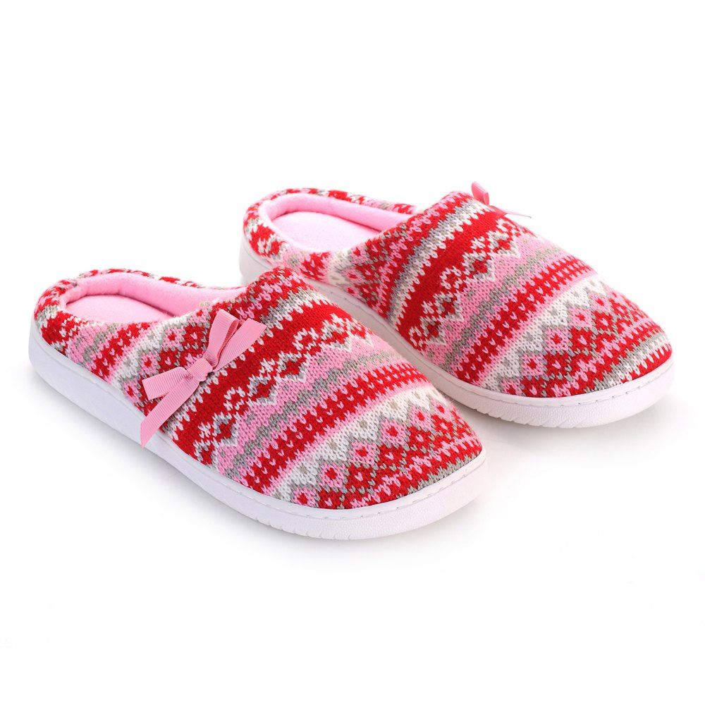 Pantoufles de maison antidérapantes tricotées en coton cachemire pour dames - Rouge et Rose ONE SIZE(35-40)
