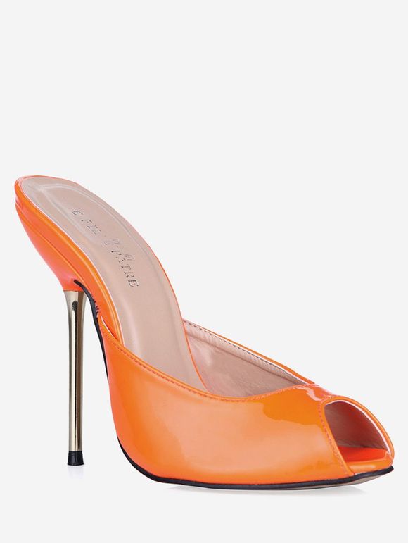 Pantoufle Bout Ouvert en Cuir Verni - Orange EU 35