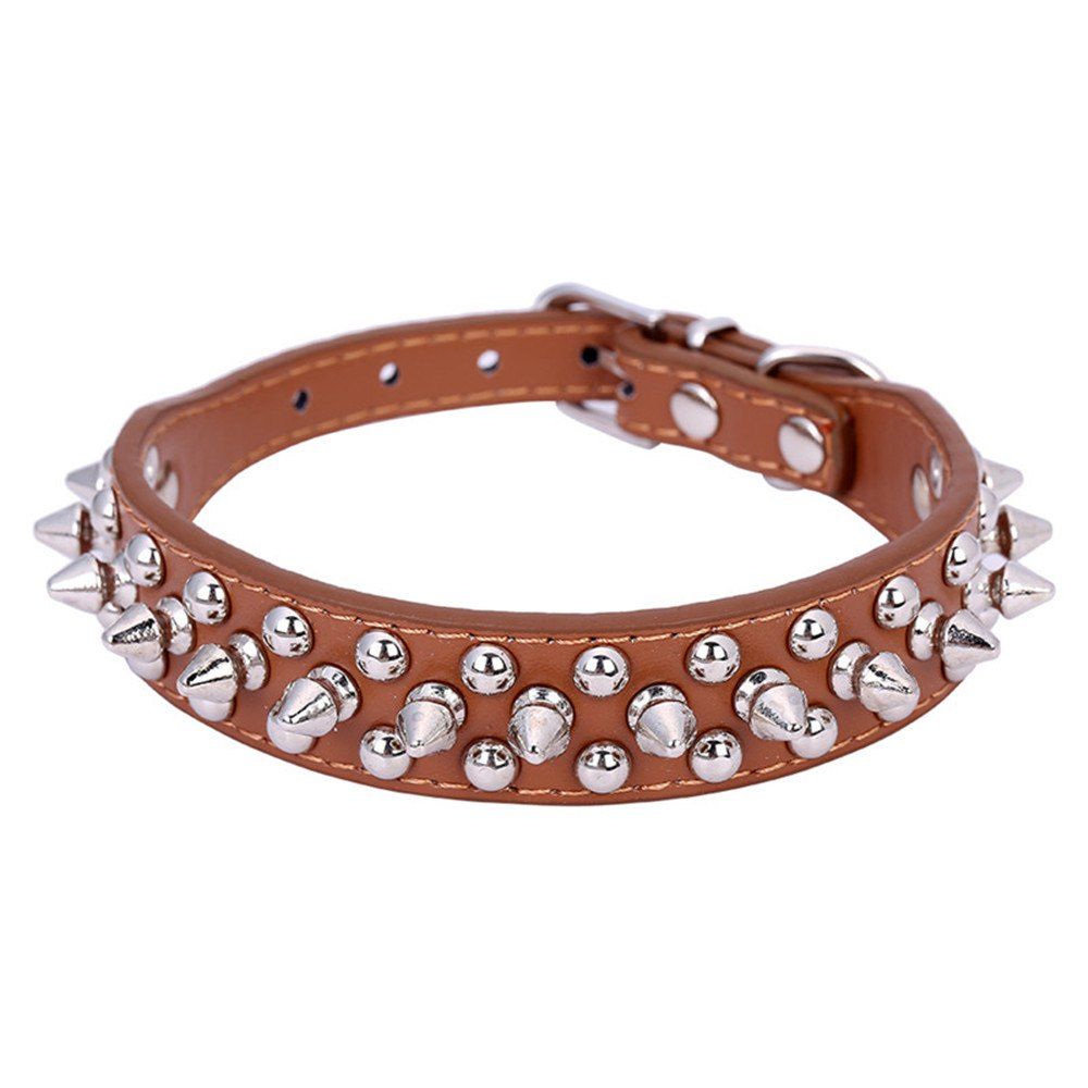 Pet Dog Collar Ronde Bullet Nail Rivet Clouté Collier Neck Strap Pitbull - Brun S