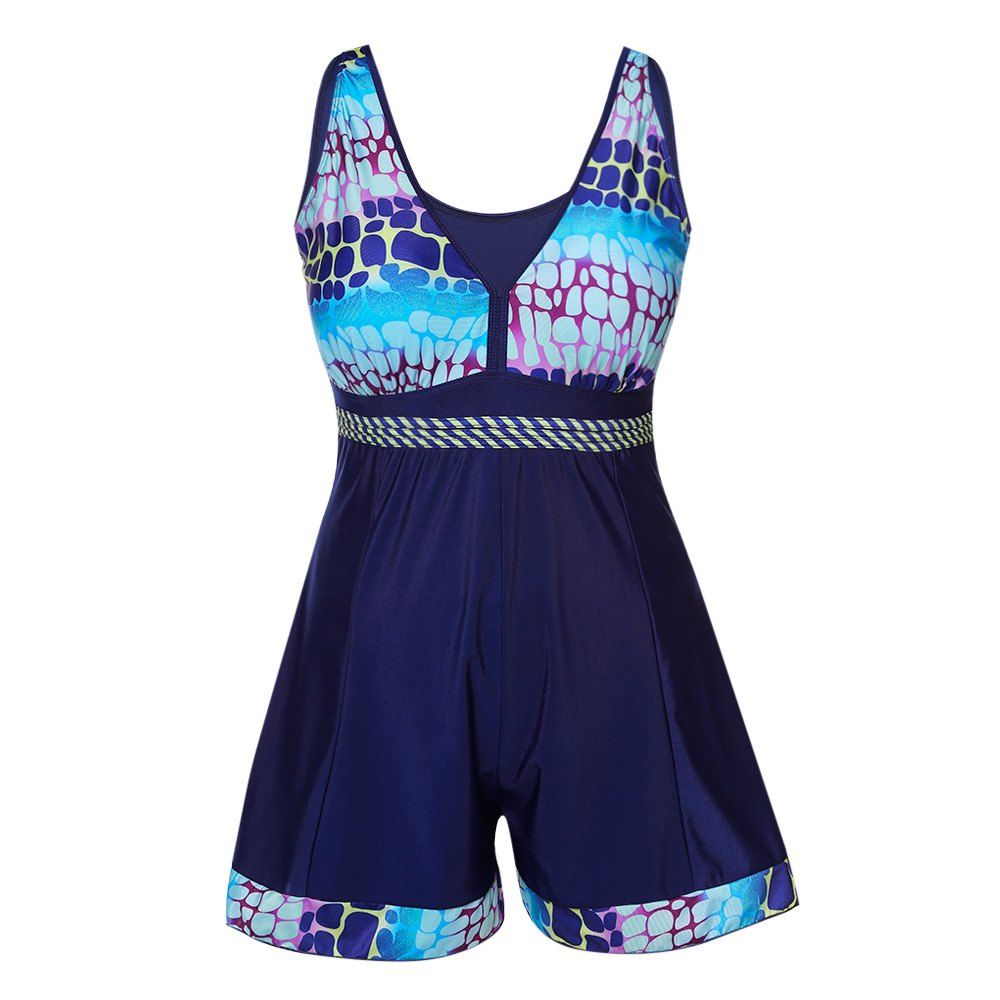 Plus Size Bikini Swimwear Two Pieces Printed Beachwear Tankini Women Swimsuit - Cadetblue 5XL