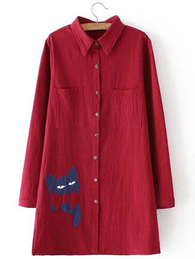 Plus Size Kitty Applique Slit Shirt - Rouge foncé 3XL