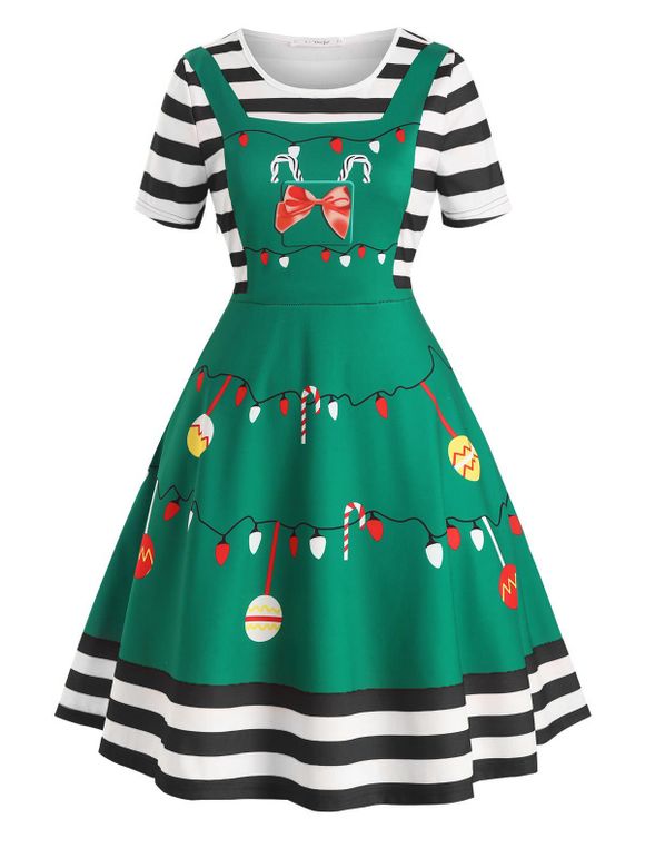 Robe de Noël Vintage Evasée Ajustée Imprimée de Grande Taille