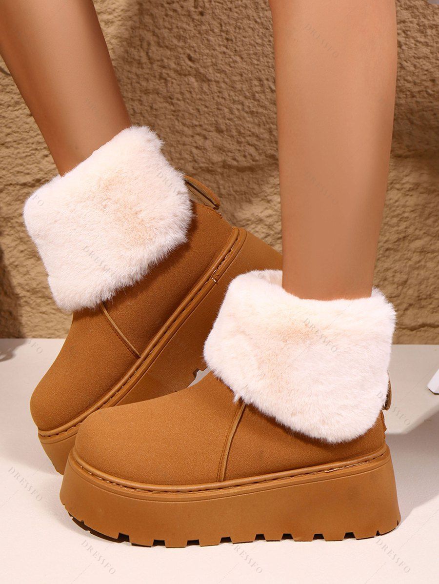 Plush Lining Snow Boots Furry Cuff Round Toe Warm Boots - Brun EU 35