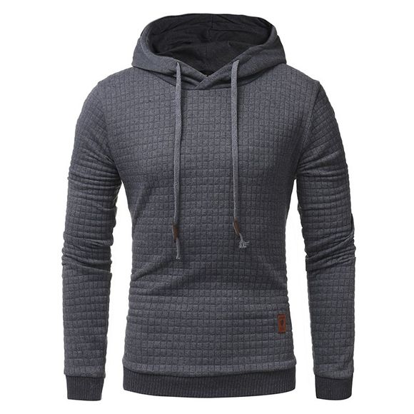 Pull-over à capuche à manches longues décontracté couleur unie Jacquard pour hommes - Gris Foncé S