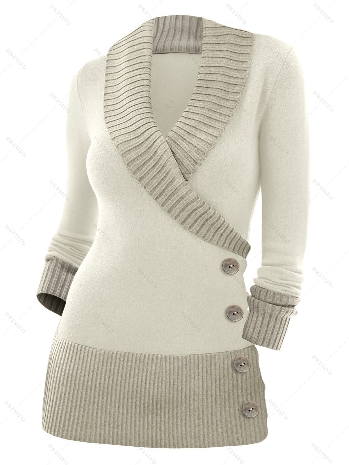 Pull colorblock à faux boutons et col cache-cœur, manches longues - Beige XXL | US 14