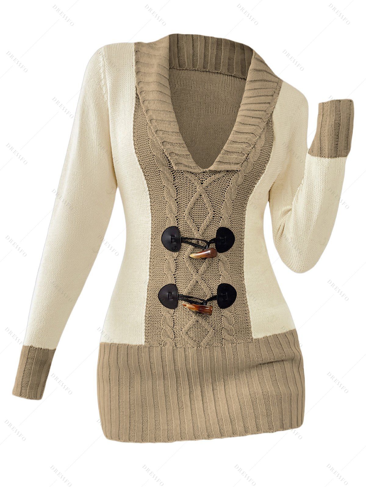 Pull décontracté à col plongeant et boutons imitation corne de couleur contrastée - Brun XXL HOT Pull décontracté à col plongeant et boutons imitation corne de couleur contrastée - Brun XXL Pull décontracté à col plongeant et boutons imitation corne de couleur contrastée - Brun XXL HOT
