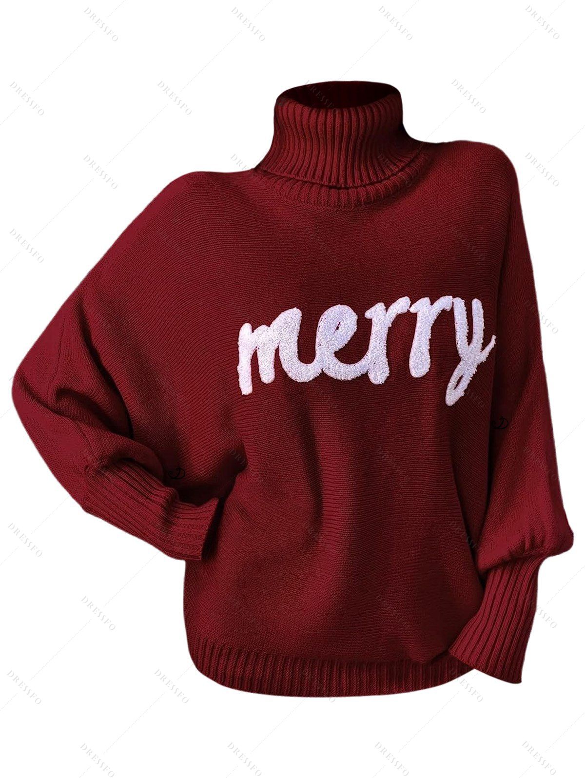 Pull de Noël à col roulé et manches chauve-souris - Rouge foncé L | US 8