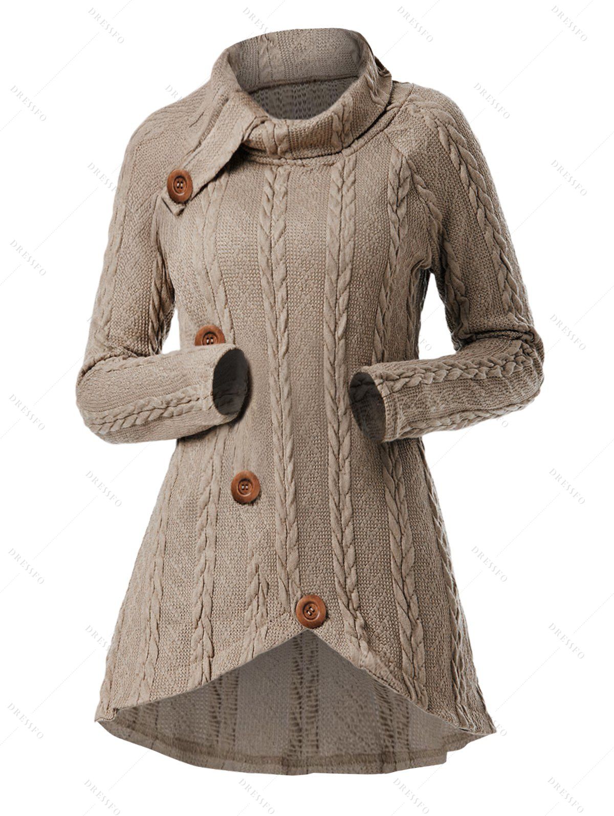 Pull en Tricot à Câble à Manches Raglan à Col Roulé - café S