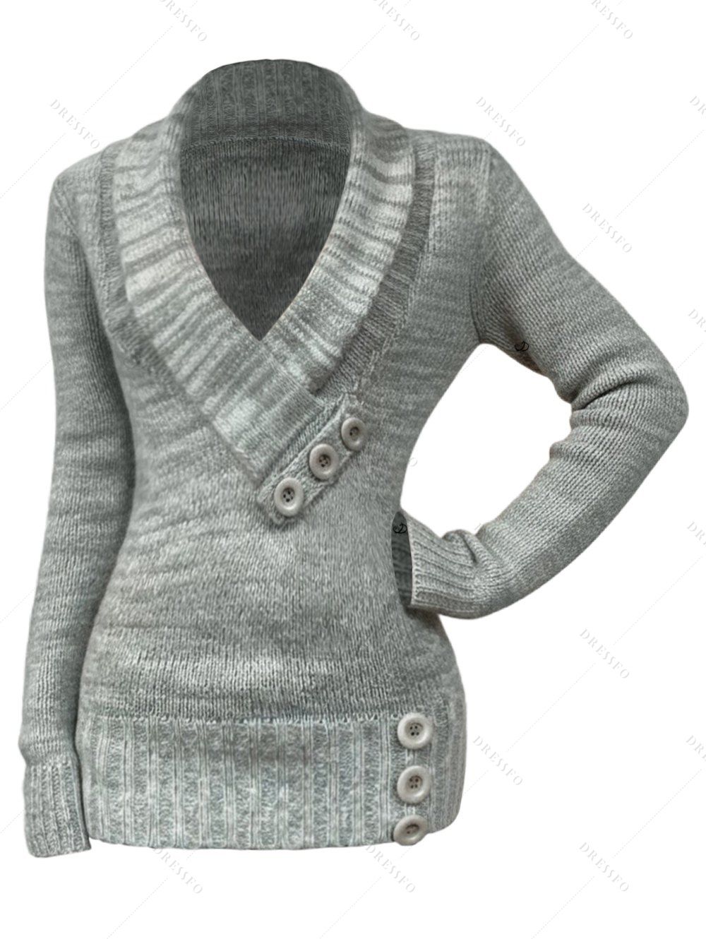 Pull Heather à faux boutons, col en V et manches longues - Gris Clair S | US 4